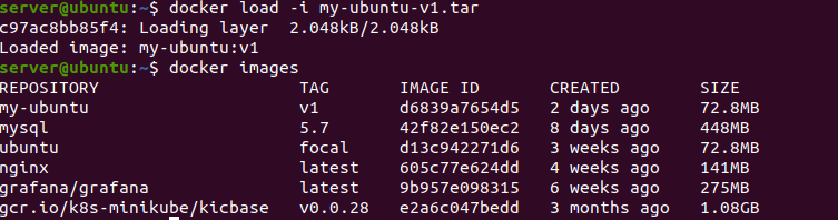 docker load -i my-ubuntu-v1.tar