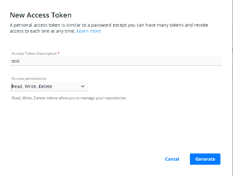 description의 이름을 지정하고 권한을 설정하면된다. 테스트이기 때문에 모든 권한을 부여한 후 Generate를 클릭해 실행하자.