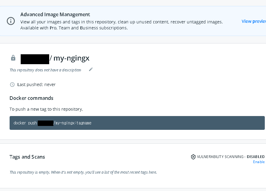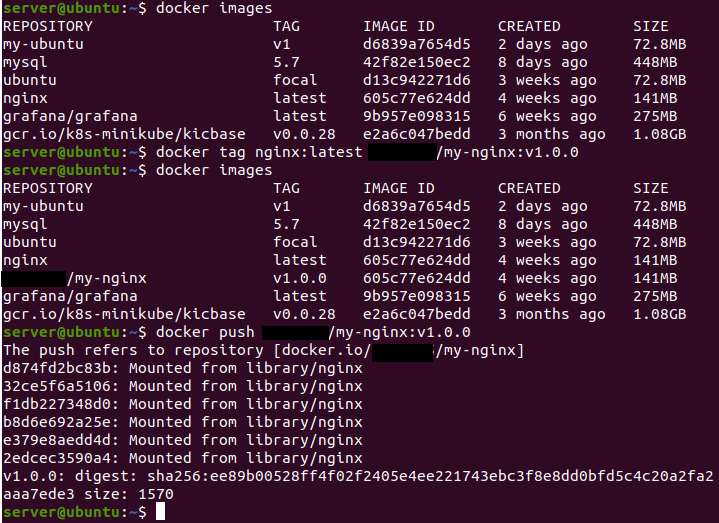 * 여기서 하나 주목해 봐야 할 점은 지금까지 dockerhub는 my-ngingx 를 사용하고 있었으나 우분투에서 nginx라는 명령어로 올리면 이것에 맞게 새롭게 레파지토리를 만들어서 형성해 준다는 점 이다.