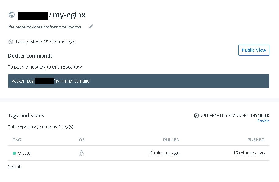 이 후 실제로 dockerhub홈페이지에서 확인해보면 잘 올라가 있는 것을 확인할 수 있다.