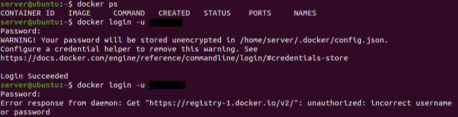 계정을 다 만들었으니 접속해 보도록 하자. host에는 docker 가 아무것도 없음을 확인할 수 있다. 아래에서 볼 수 있듯 로그인에 실패하면 실패했다고, 성공했다면 성공했다고 친절히 알려주니 잘 보고 들어가도록 하자. 또한 로그인이 성공하게 되었다면 json형태로 페스워드가 저장되어있다.