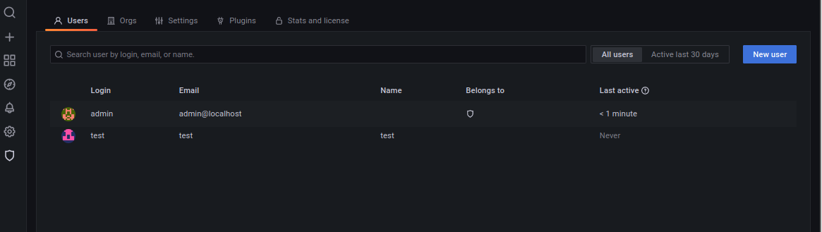 ; user = grafana