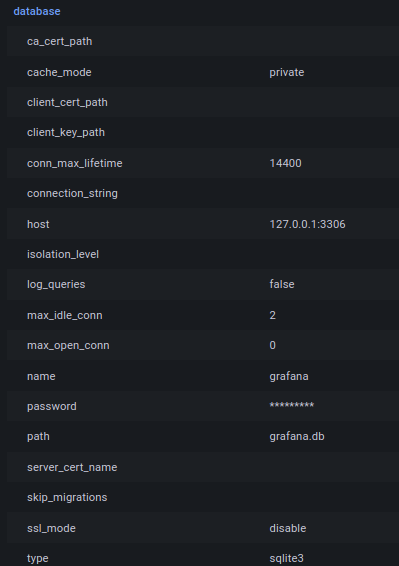 - 기본 세팅에 추가하여 정파일(grafana.ini)에서 database를 sqlite에서 MySQL로 변경