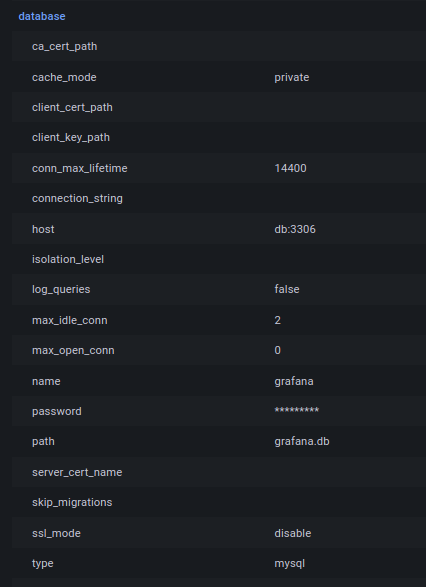 MYSQL_ROOT_PASSWORD: grafana