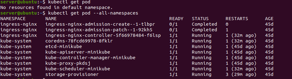 아래의 명령어를 입력하면 쿠베ctl로 현재 클러스터의 모든 name으로부터 스테이터스를 확인할 수 있다.
