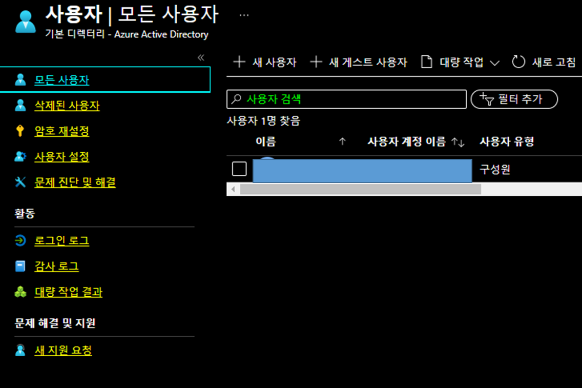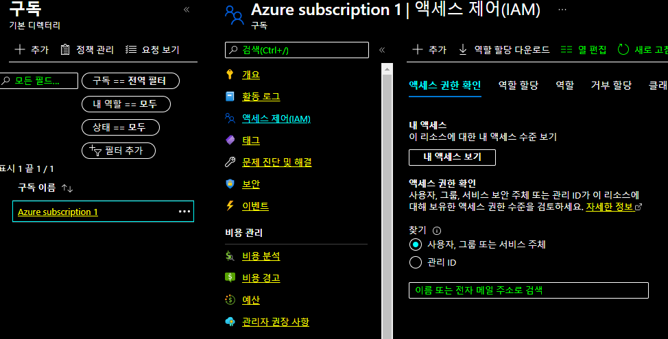 potal에 접근하여 금방 만든 계정으로 로그인 하도록 하자. 계정은 역할 할당에서 확인할 수 있다.