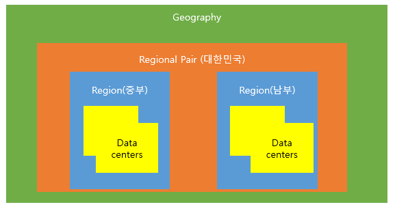 에저는 geography(지오그레피)라는 영역(resion)을 바탕으로 하여 regional pair(korea)라는 영역을 가지고있다. 이 안에는 region(main, sub)라는 2개의 영역이 있다. 아래의 그림을 보며 이해하도록 하자.