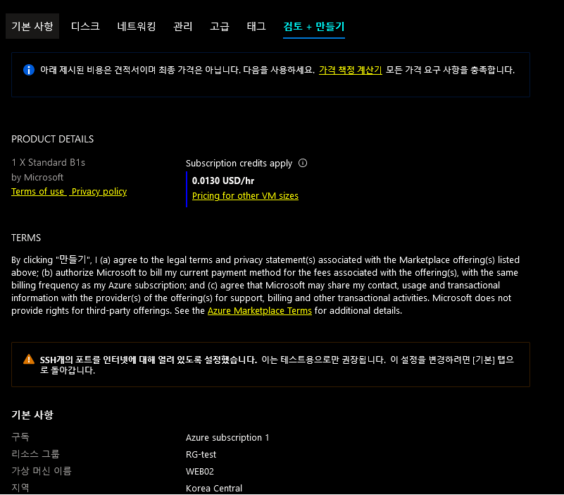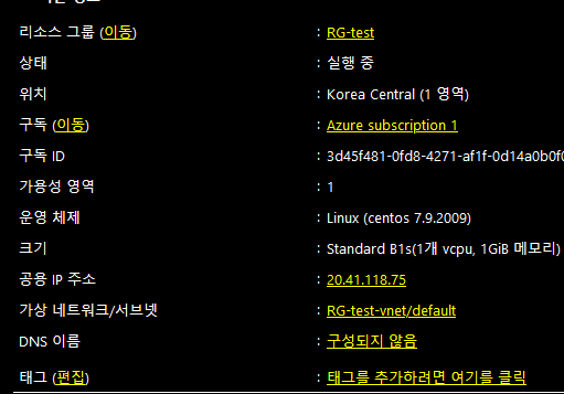 2. 리소스 그룹 체크(새로 만들어도 됨. 이때 RG라는 접두사를 주로 사용함)