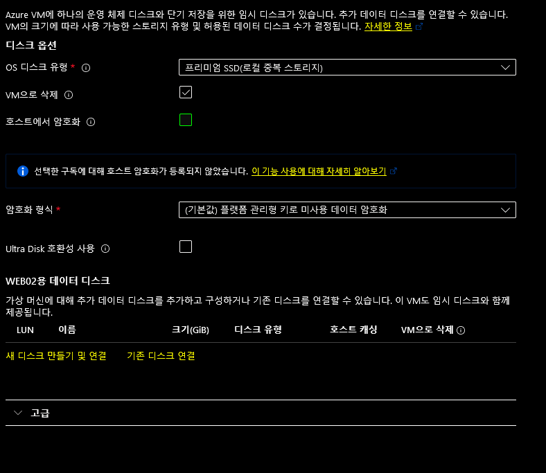 14. disk 설정 (디스크 유형 선택) : 프리미엄 SSD