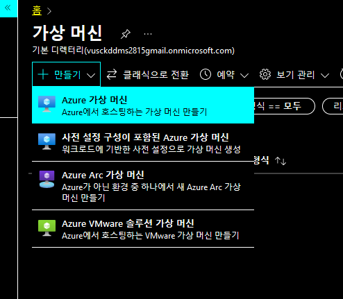 가상머신 을 검색해 들어가도록 하자.