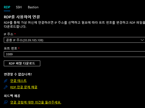 윈도우의 경우 원격 데스크톱으로 접근할 수 있다. 혹은 콘솔창 자체에서 연결을 할 수 도 있는데 rdp 연결을 클릭후 다운로드를 받으면 된다.