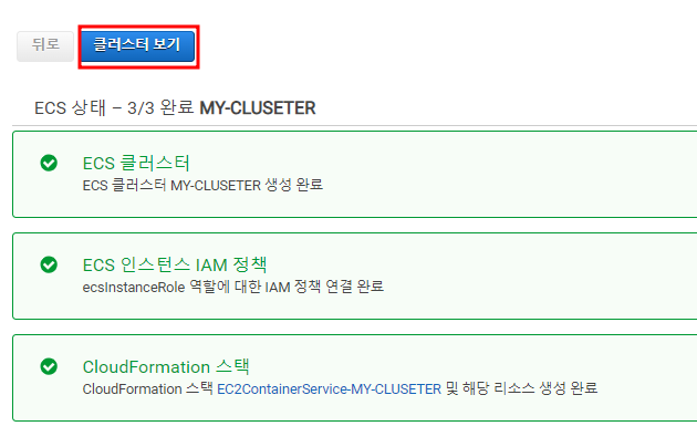 이 후 최 하단에서 생성 버튼을 클릭하면 작업저의가 완료된다. 이제 클러스터를 생성해 보도록 하자.