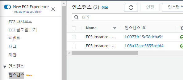 이제 EC2로 가보도록 하자. ECS가 잘 설치되어있는것을 확인할 수 있다. 여기에 있는 EC2를 ALB로 생성하도록 하자.