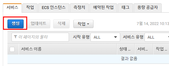 그럼 아래와 같은 화면이 나타나는데, 서비스를 생성해 보도록 하자.