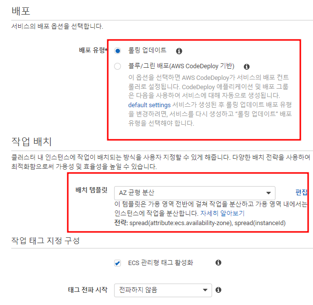 롤링설정과 배치 템플릿 분산을 지정할 수 있다.