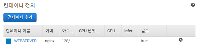 IAM역할과 작업크기를 설정할 수 도 있다. 본인이 원하는 PC Resorce를 설정할 수 있다. 도커 컨테이너의 크기를 정하는것과 같은 역할을 한다.