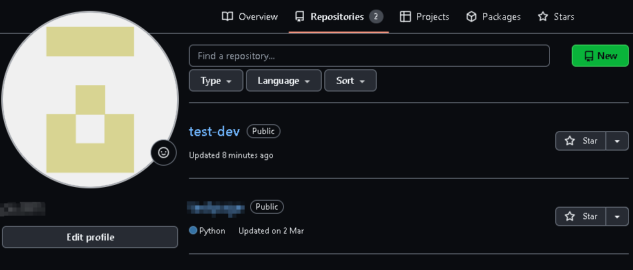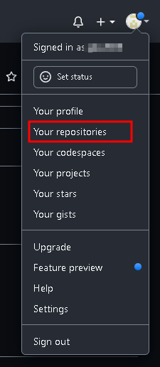 이 후 우측 상단의 아이콘을 클릭하여 your repositories를 들어가보도록 하자.