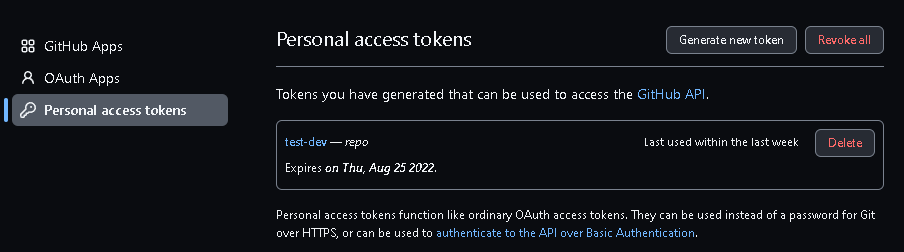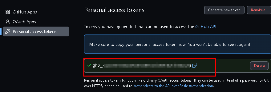 이렇게 만들어진 토큰은 정말 중요하며, 단 한번만 확인할 수 있기에 반드시 개인적으로 보관하도록 하자.