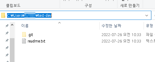 $ git clone https://github.com/계정명/test-dev.git