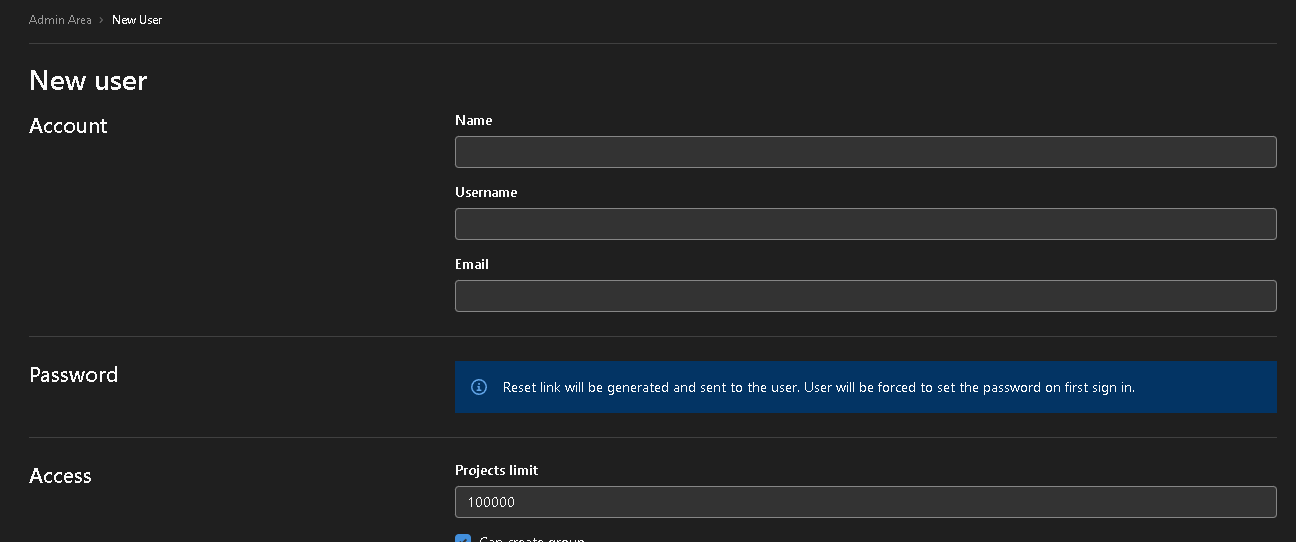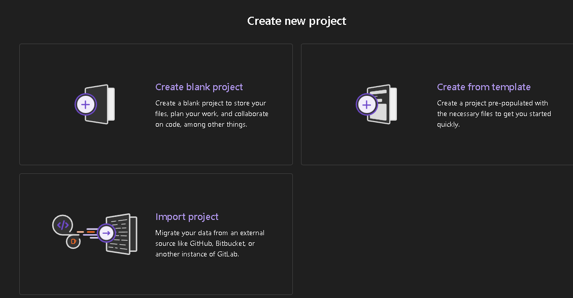 새로운 프로젝트를 생성해 보도록 하자. 깃허브와 같은 형식으로 할 수 있다.