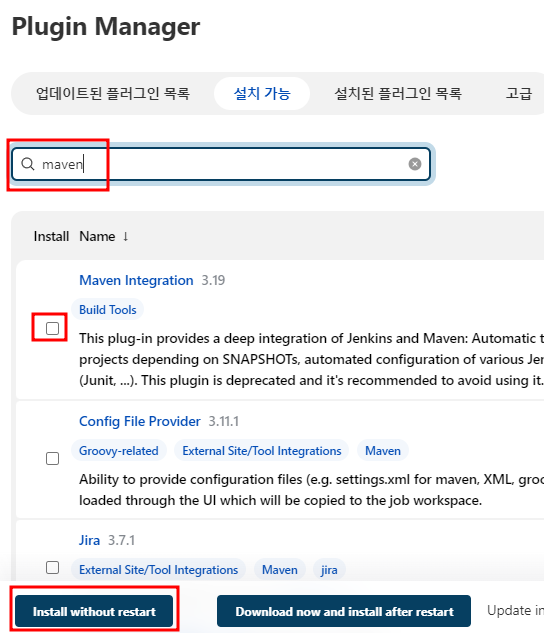 이 후 GUI에서 Plugin Manager과 Global Tool Configuration에서 마저 세팅을 하도록 하자.