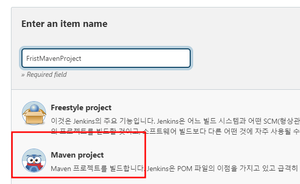 이제 Item을 만들때 Maven파일이 있는것을 확인할 수 있다.