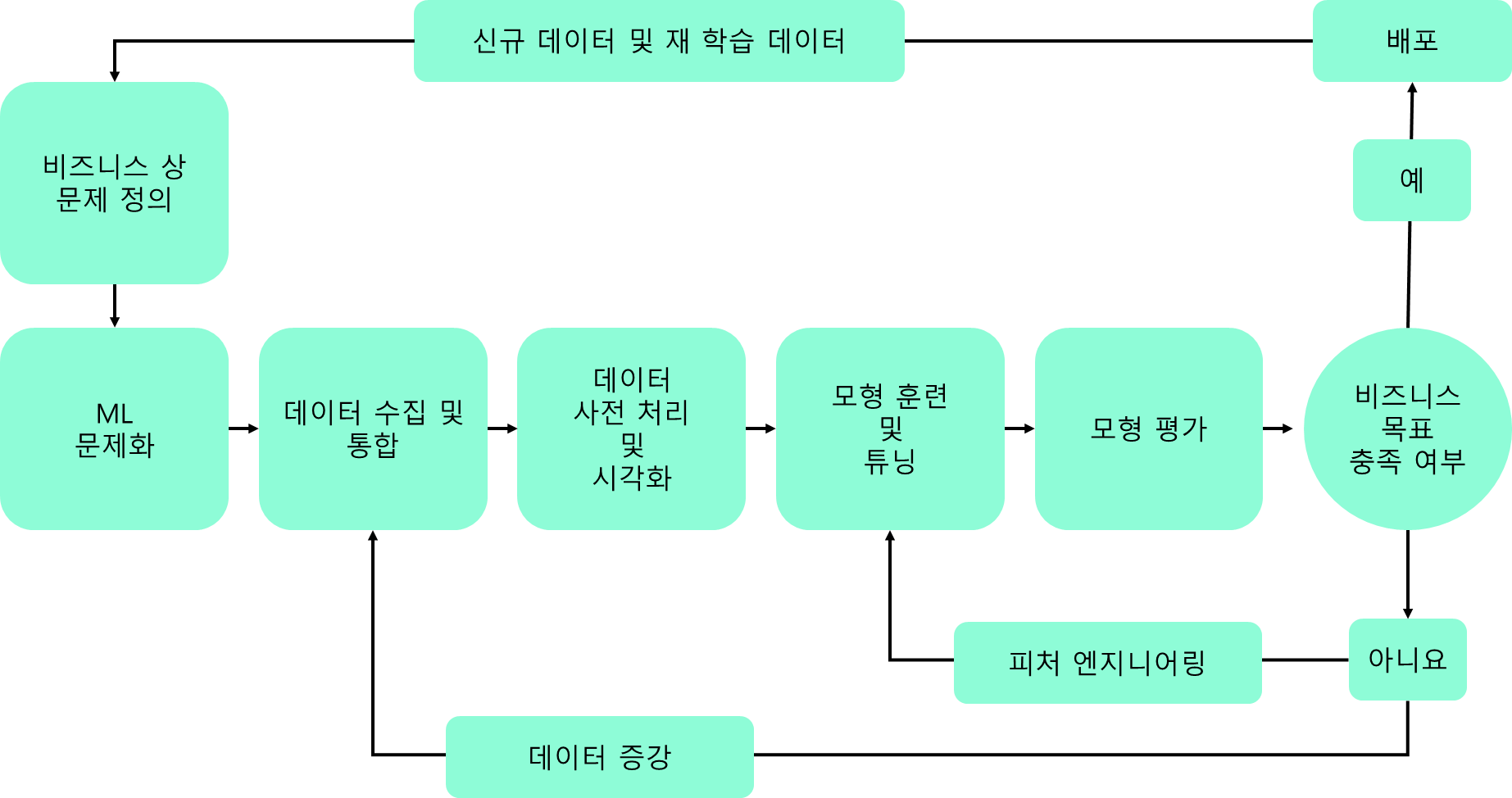 ⑩또한 이 배포되는 내용이 실제로 어떻게 사용되며, 배포이후 생기는 데이터를 다시 입력받아서 새로운 알고리즘을 학습하며 버전업을 하기도 한다.