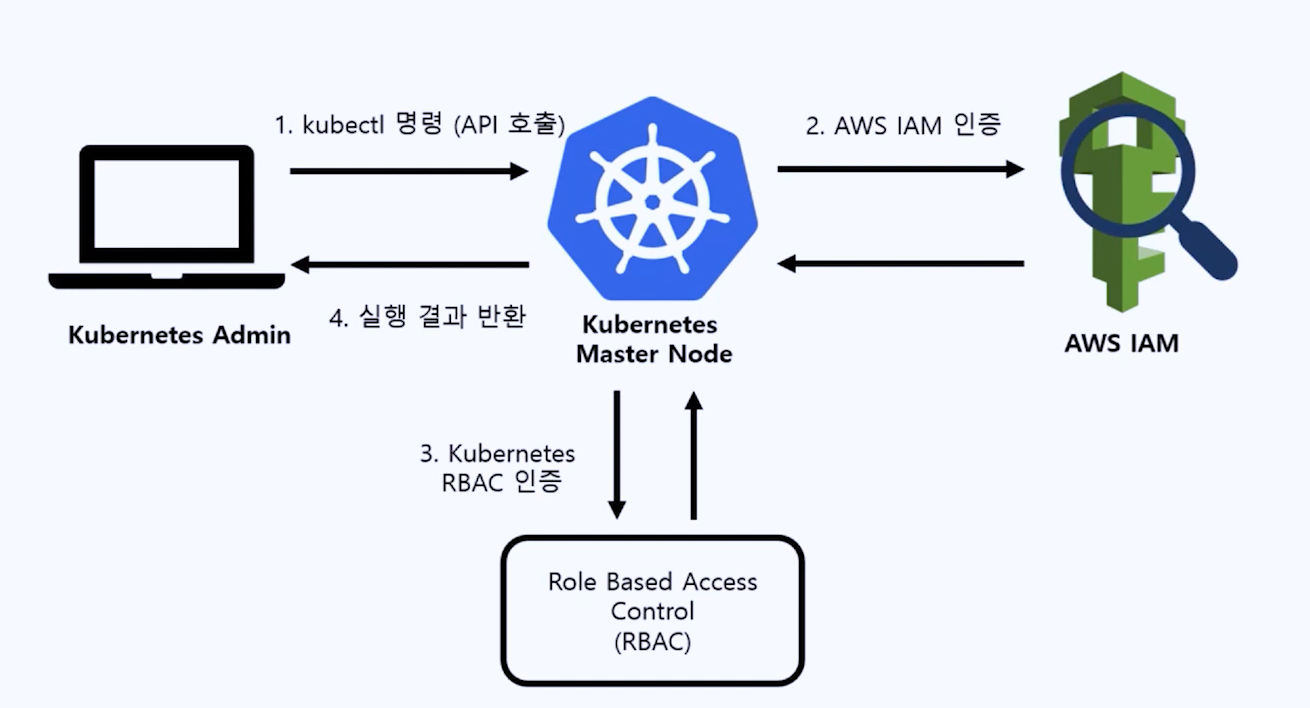 어떤 방법을 사용하더라도 eks를 설치한 후 반드시 가장 먼저 해야할 부분은 IAM을 관리하는것이다. 기본적으로 생성한 user의 iam유저가 master권한을 획득하며, 해당 유저는 k8s의 모든 자원을 활용할 수 있다.