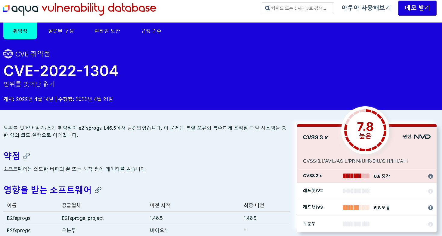 e2fsprogs값이 high이기에, 이 값에 대한 문제를 확인하기위해 해당 링크에 접근해 보았다.