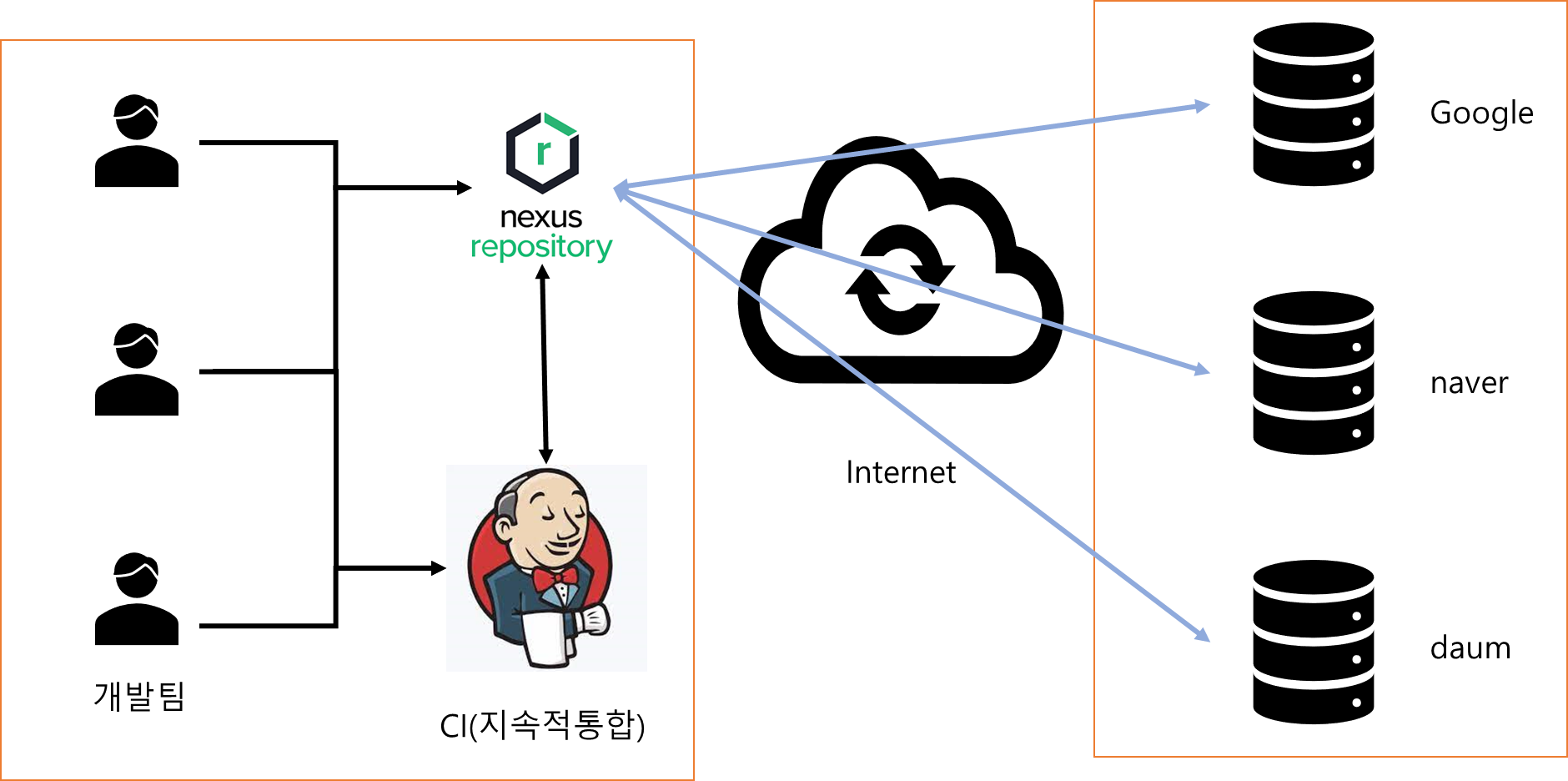 Nexus Repository Manager가 가장 많이 사용되는 곳은 Private Repository 즉, 외부로 공개하고 싶지 않은, 회사 내부나 개발팀 내부에서만 사용하고 싶어하는 은밀한 보관함을 위주로 사용한다. 또한 중앙 저장소를 미러링 및 캐싱하여, 이미지 빌드 등을 빠르게 할 수 있도록 지원하며, 미러링 및 캐싱된 정보를 바탕으로 중앙 저장소에 문제가 발생하더라도 빌드가 중단되지 않도록 지원해 준다.