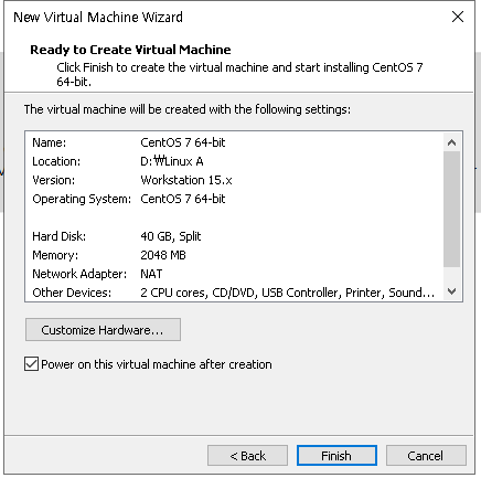 customize Hadware... 버튼을 클릭해 지금까지 설정한 H/W의 설정을 변경할 수 도 있으며 네트워크를 추가, 삭제할 수 도 있다.
