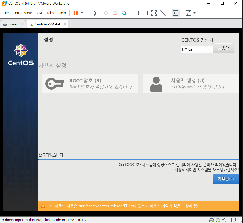 한숨 자고(?)오니 설치가 완료되었다! 제부팅을 해 주도록 하자. 메인 pc가 아닌 하단의 제부팅을 클릭하면된다.