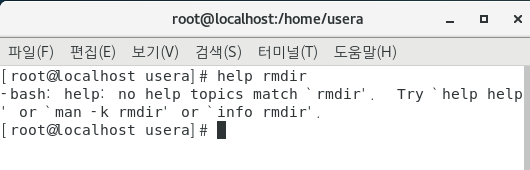 어떤가! 고작 한 줄의 명령어를 사용해 새로운 디렉토리를 만들었다. 신난다! 이제 만든 디렉토리를 삭제해보자. rmdir /home/usera/test(마지막에 지우고 싶은 디렉토리의 이름)