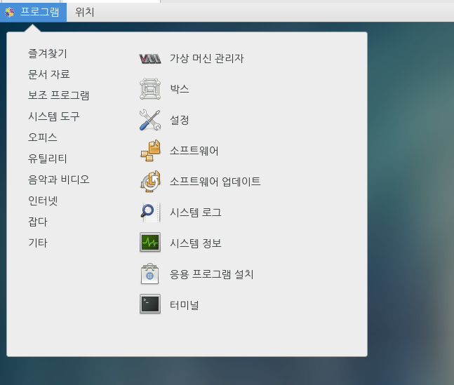 먼저 왼쪽 상단의 프로그램 창을 클릭한 후 시스템 도구 를 클릭 해 보자. 이것저것 많이 나타나는데 우리는 여기서 '터미널' 이라는 슬롯을 클릭 해 보자.