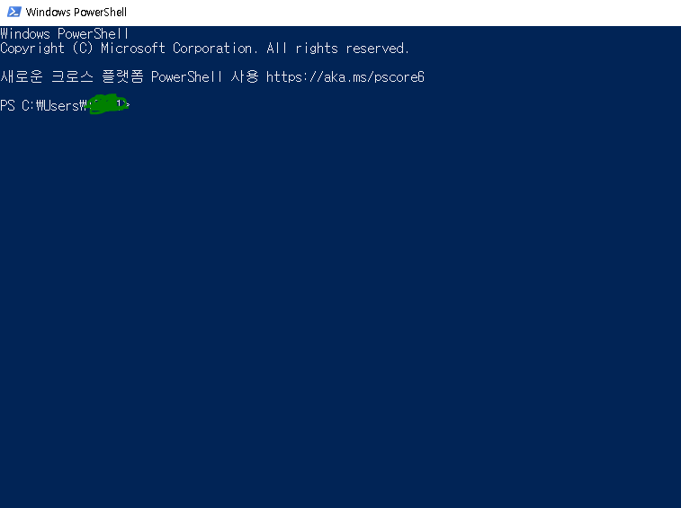 그러면 새로운 powershell이 나타나게 된다. 이 전에 실행한 프로그렘은 꺼두자.