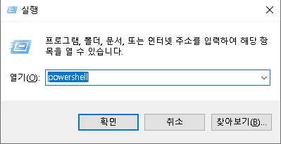 GUI도 사용할 수 있고 CLI를 통해서도 활성할 수 있다. 하지만 우리는 IT를 공부하기 때문에 조금 멋있게 CLI를 통해서 작업을 시작해 보자. 먼저 ctrl + r 을 눌러 명령창을 열고 powershell을 실행하자.