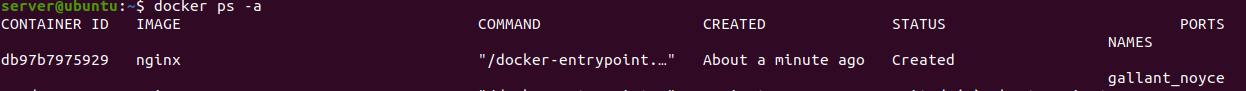 docker create nginx 명령어를 수행하게 되면 도커 엔진에 부여하는 컨테이너를 생성하고 고유 id를 보여주게 된다.