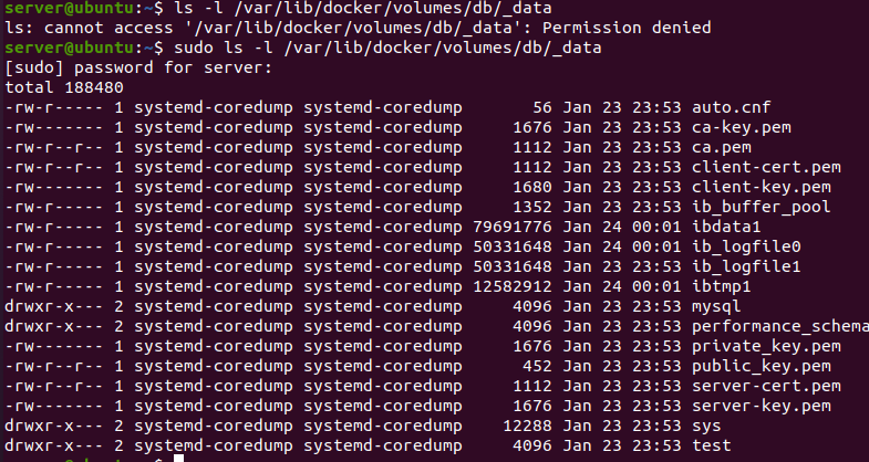 inspect명령어를 통해서도 잘 확인할 수 있으며 ls명령어도 마찬가지로 잘 형성되는것을 볼 수 있다.(참고. ls의 경우 sudo로 권한을 부여해야지 실행이 된다.)