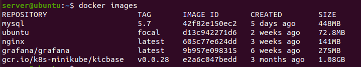 docker images 명령어를 사용하면 해당 운영체제의 로컬에 보관중인 이미지 목록을 확인할 수 있다. 또한 inspect 명령어를 통해서 헤쉬값으로 되어있는 배열형태를 확인할 수 있다.