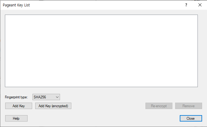 이 후 pagegen프로그렘을 실행해 보도록 하자. 텅텅 비어있을 것 인데 왼쪽의 add key 버튼을 클릭 후 금방 변환한 파이를 등록해 주도록 하자. 그럼 아래와 같은 화면이 나타나게 될 것이다.