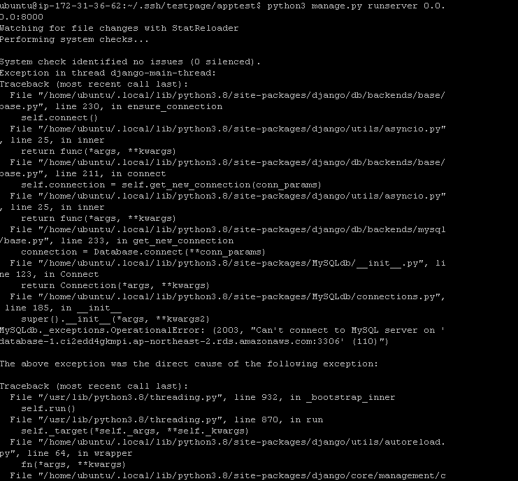 AWS runserver Error(2003, (110)) 문제 해결