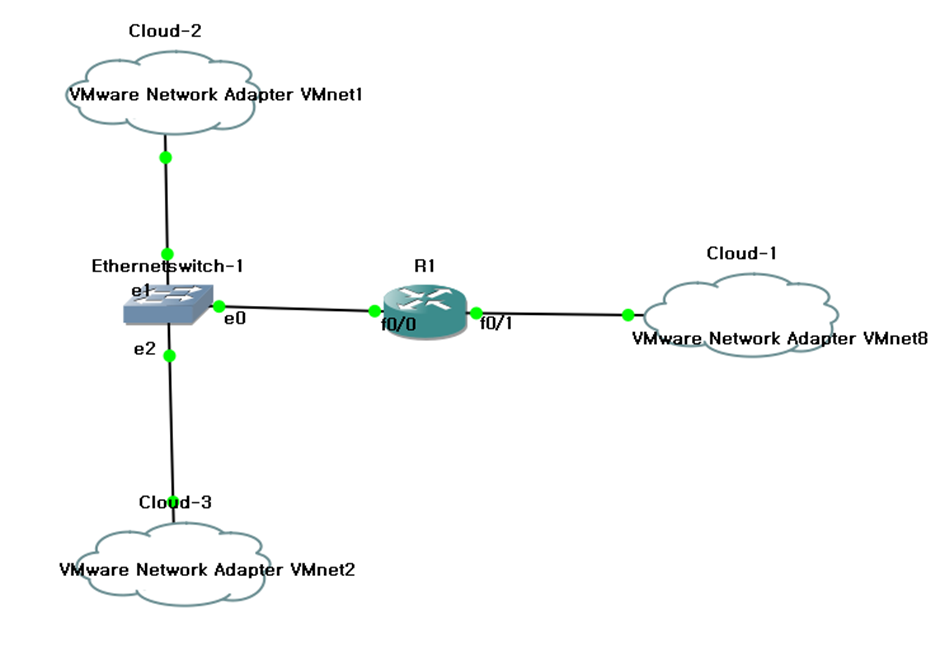 위 gns3 이미지를 바탕으로 하여 아래의 시나리오를 실행해 보도록 하자.