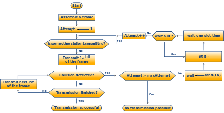 'half duplex에서 동작하는 링크에서 ethernet이 frame을 전송하는 절차' 이다.