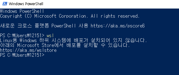 두 명령어가 완료된 이 후 재부팅을 해 두도록하자. 이제부터는 WSL명령어가 실행된다!! 재부팅을 완료한 후 다시 powershell을 켜주자. 그 이후 wsl이라고 입력하면 다음과 같은 화면이 나타난다. 이 얼마나 친절한가. 사랑해요 MS(취업 좀 시켜주세요 굽신굽신)