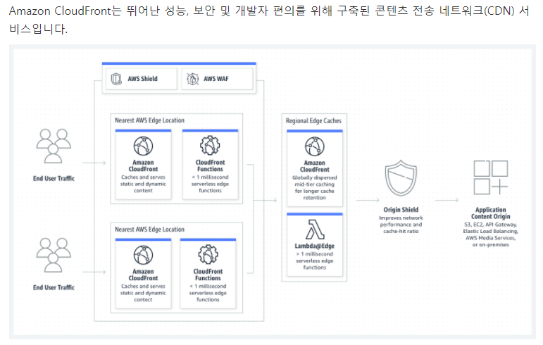 즉 자동화된 네트워크 매핑으로 대기시간을 줄이고 AWS shield를 사용해 DDos에서 보호하고 사용자 요금을 절감할 수 있으며 서버리스 컴퓨팅 환경으로 코드를 사용자가 지정할수있다.