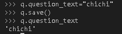 question_text의 값을 변경하고 싶으면 그냥 현 상황에서 그대로 q.question_text="변경단어" 이라고 입력하면 된다.